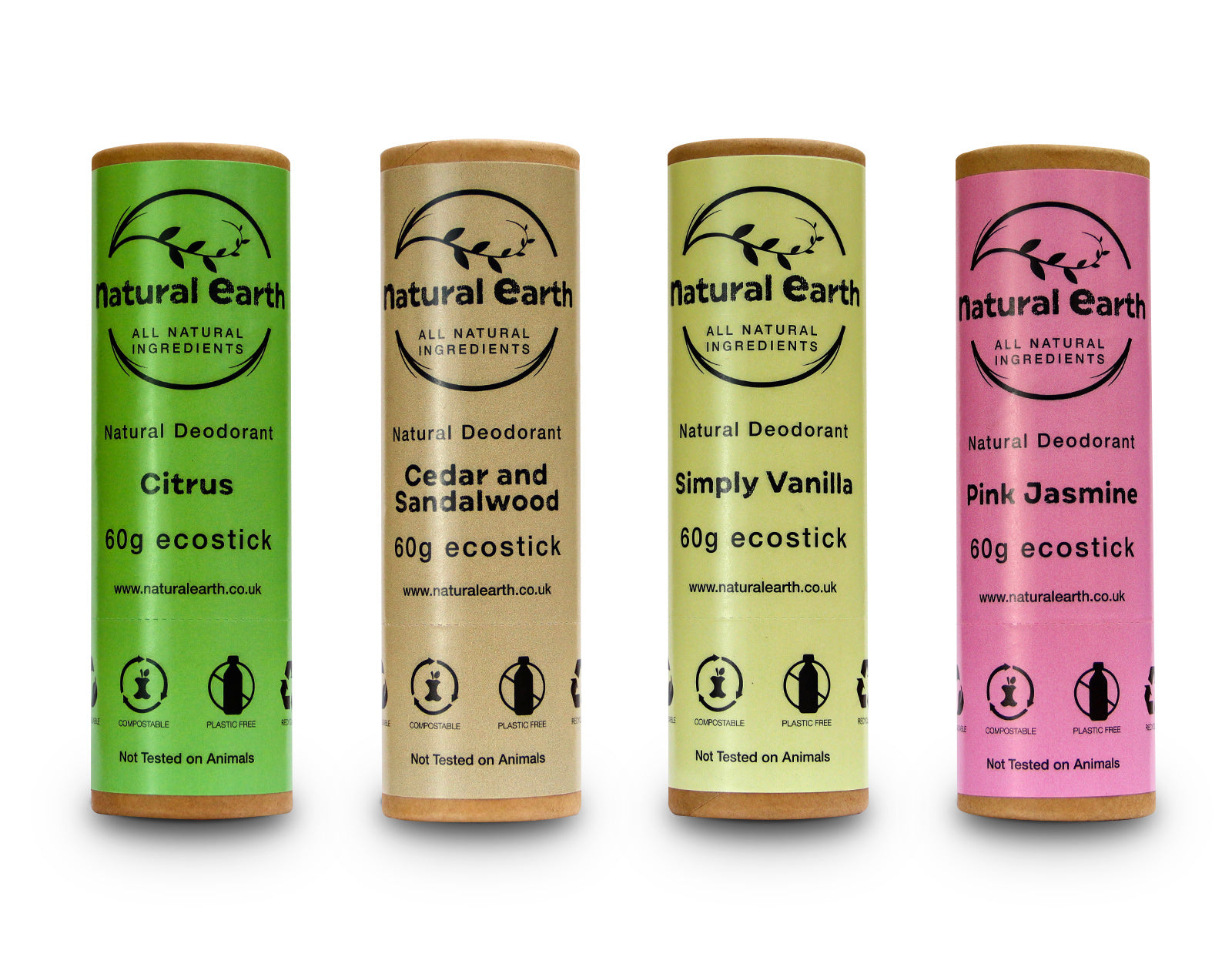 Natural Earth deodorant and lip balm ecosticks are made with organic and vegan raw ingredients that care for your skin and are environmentally friendly. They’re packaged in recyclable or compostable cardboard packaging that is made in the UK. We’re committed to causing minimal damage to our planet.